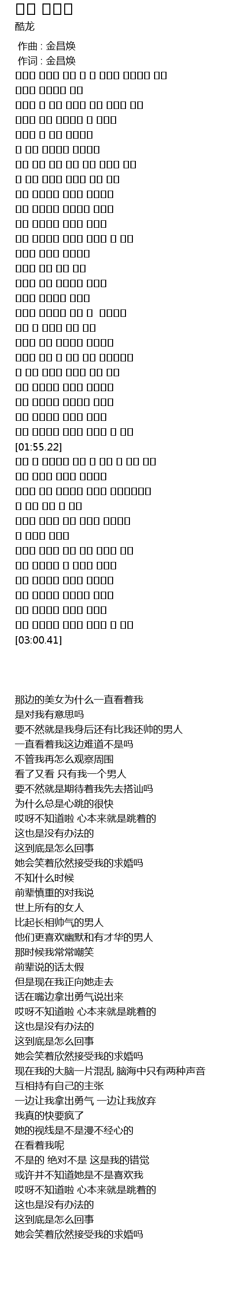 | [02:56.12] | 나의 프로포즐 살며시 받아주 고 있어 |