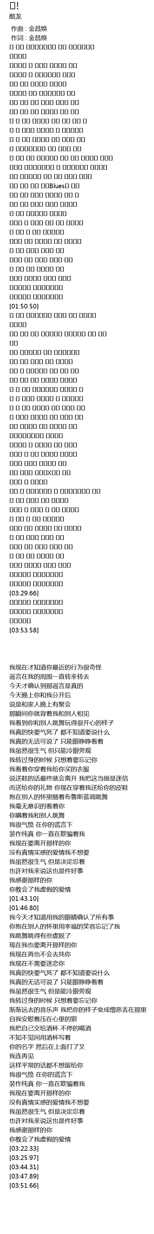 | [00:01.00] | 作词 : 金昌焕 |