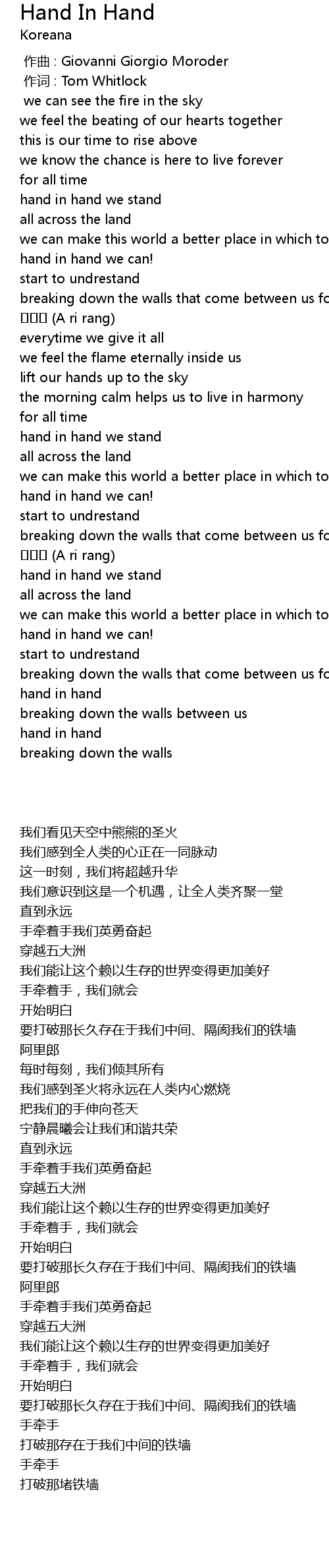 | 歌曲 | Hand In Hand |