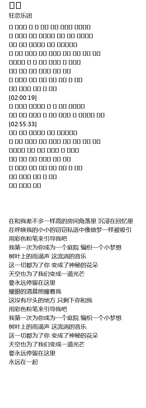 | [03:10:10] | 我第一次为你成为一个庭院 编织一个小梦想 |