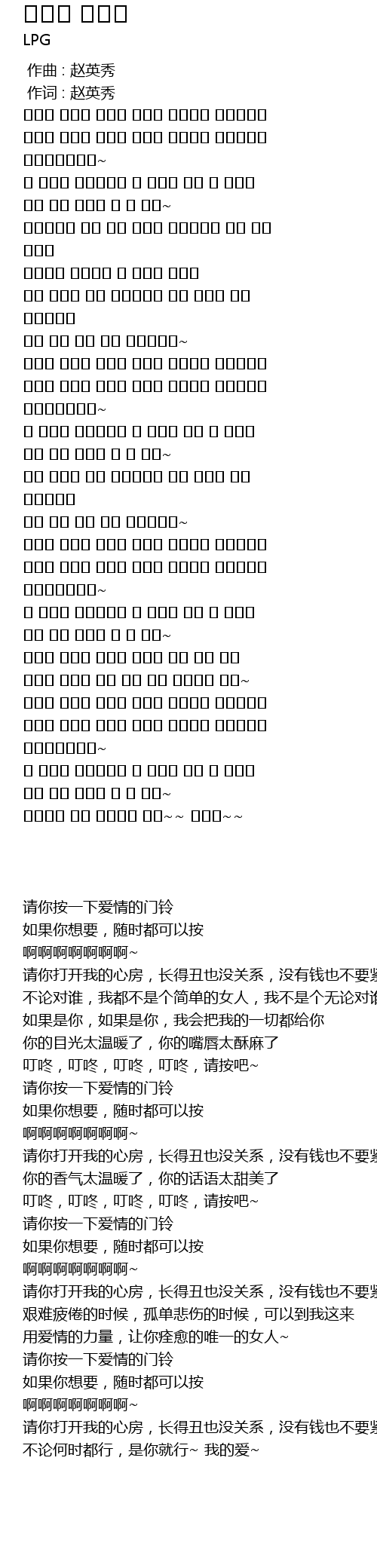 | [00:09.740] | 그대여 사랑의 사랑의 사랑의 초인종을 눌러주세요 |