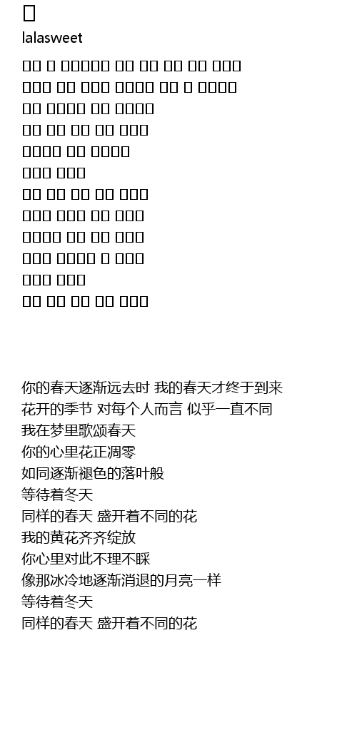 | [00:06.640] | 你的春天逐渐远去时 我的春天才终于到来 |