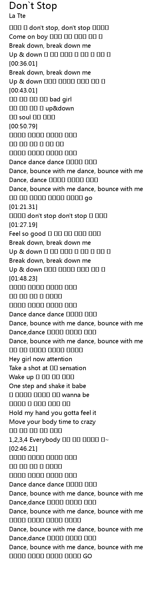 | [00:17.64] | don' t stop, don' t stop |
