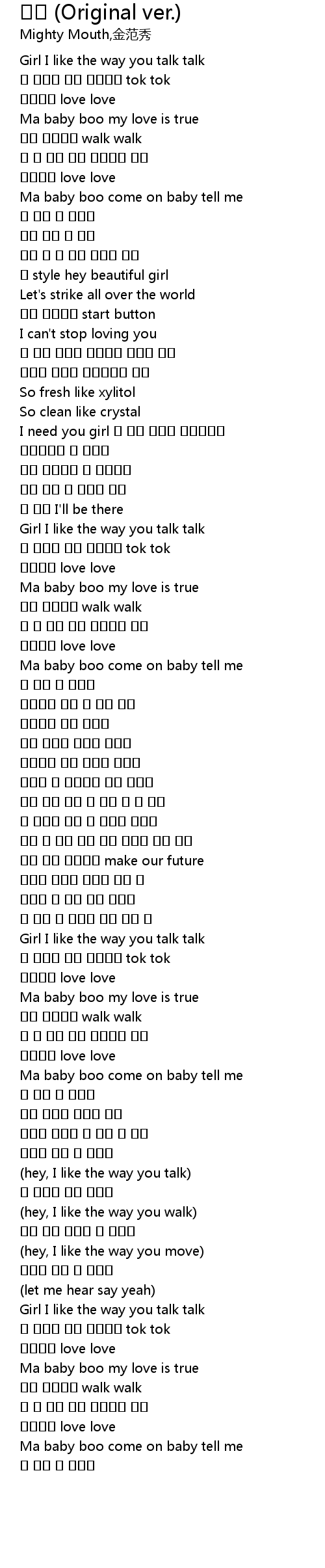 | [02:18.55] | 내 귓가에 쏙쏙 달콤하게 tok tok |