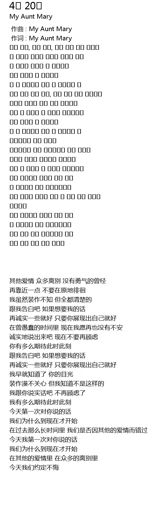 | [00:00.00] | 作曲 : My Aunt Mary |