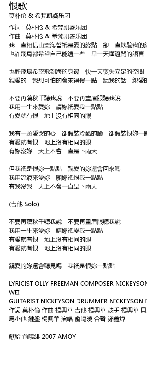 | 歌曲 | 恨歌 |
