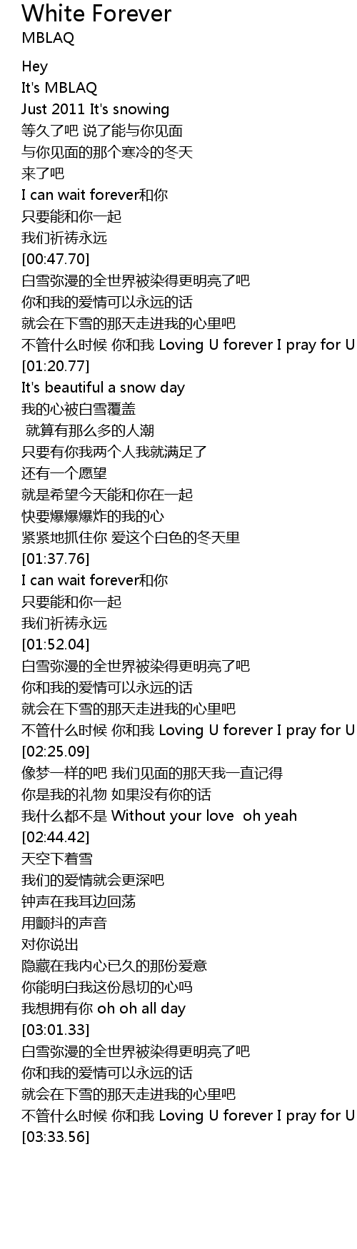 | [01:11.33] | 不管什么时候 你和我 Loving U forever I pray for U |