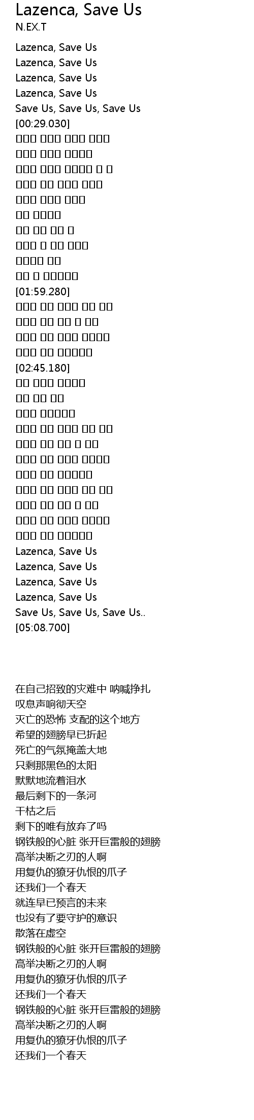 | [00:17.820] | Lazenca, Save Us |