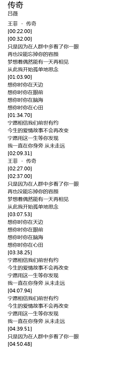 | [00:02.00] | 王菲 - 传奇 |