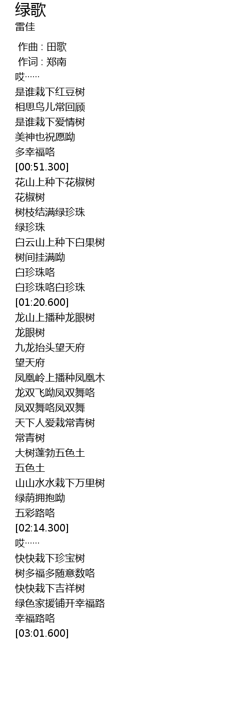 | [01:03.300] | 树枝结满绿珍珠 |
