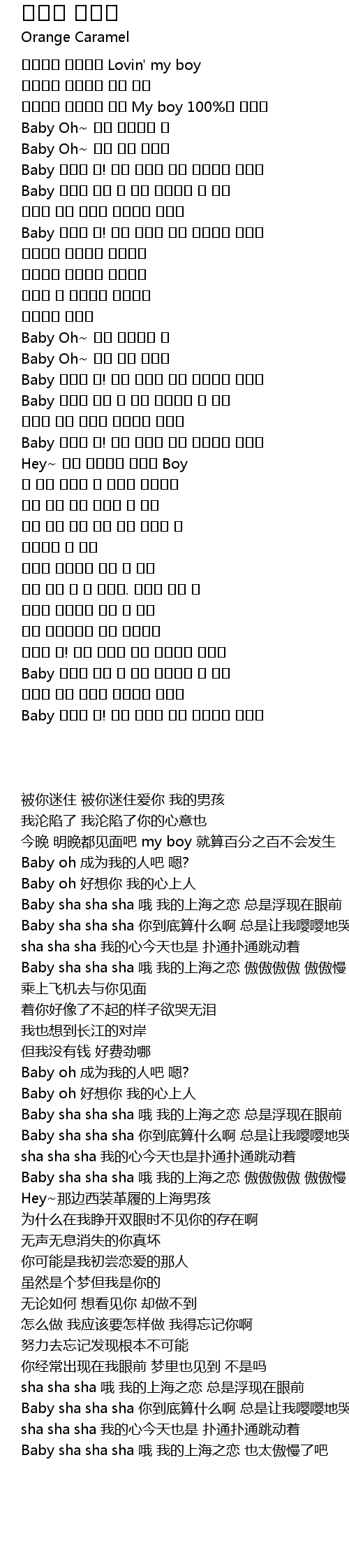 | [02:01.238] | Baby 쌰쌰쌰 오! 나의 샹하이 러브 자꾸자꾸 나타나 |