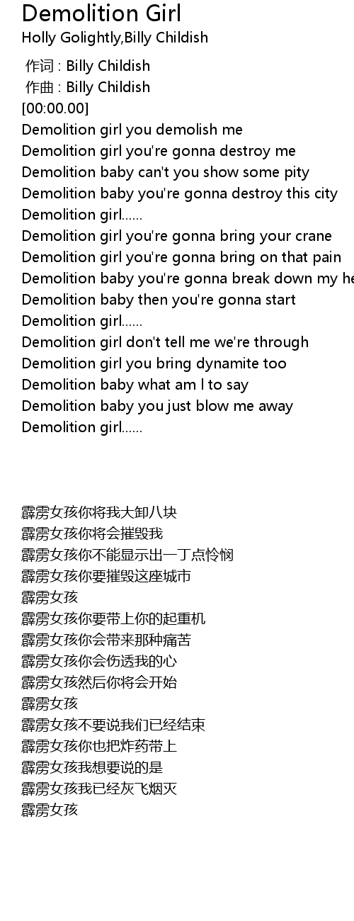 | [00:07.95] | Demolition girl you demolish me |