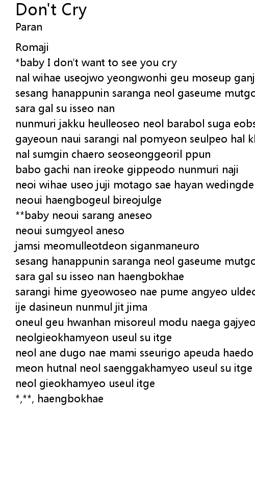 *baby I don't want to see you cry |