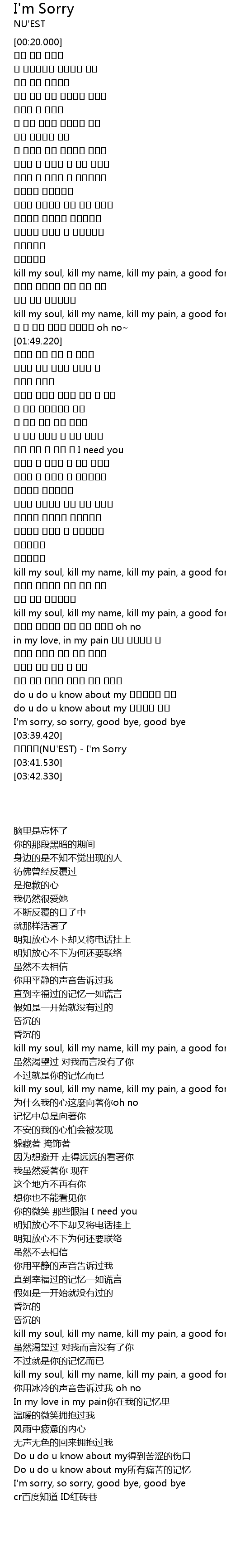 | [03:40.600] | NU' EST I' m Sorry |