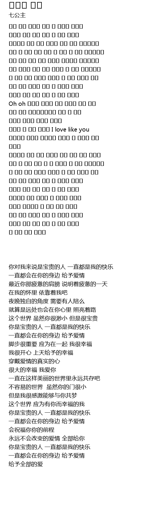 | [01:53.44] | 너무나 큰 기쁨 말이죠 I love like you |