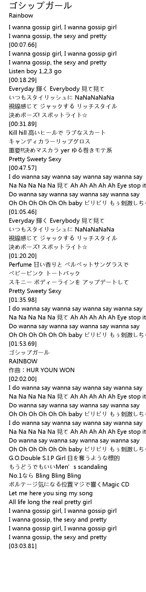 | [02:56.30] | I wanna gossip girl, I wanna gossip girl |