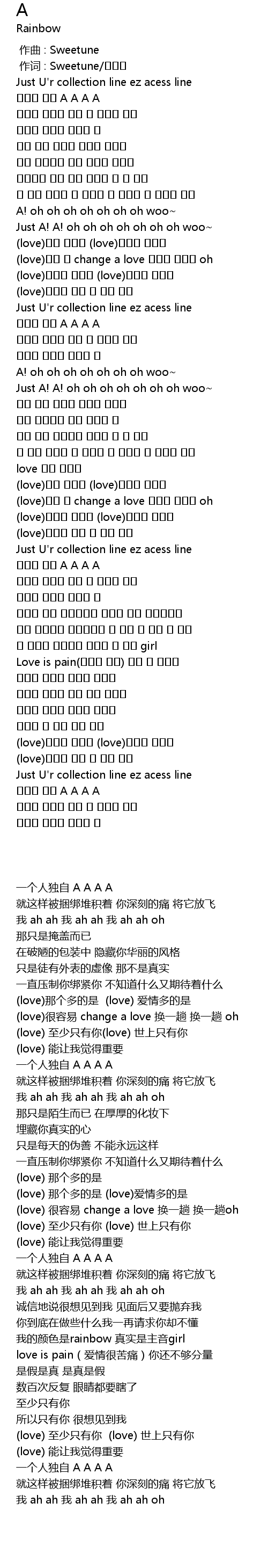 | [02:34.920] | 我的颜色是rainbow 真实是主音girl |