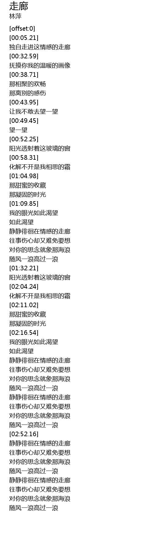 | [02:39.19] | 静静徘徊在情感的走廊 |