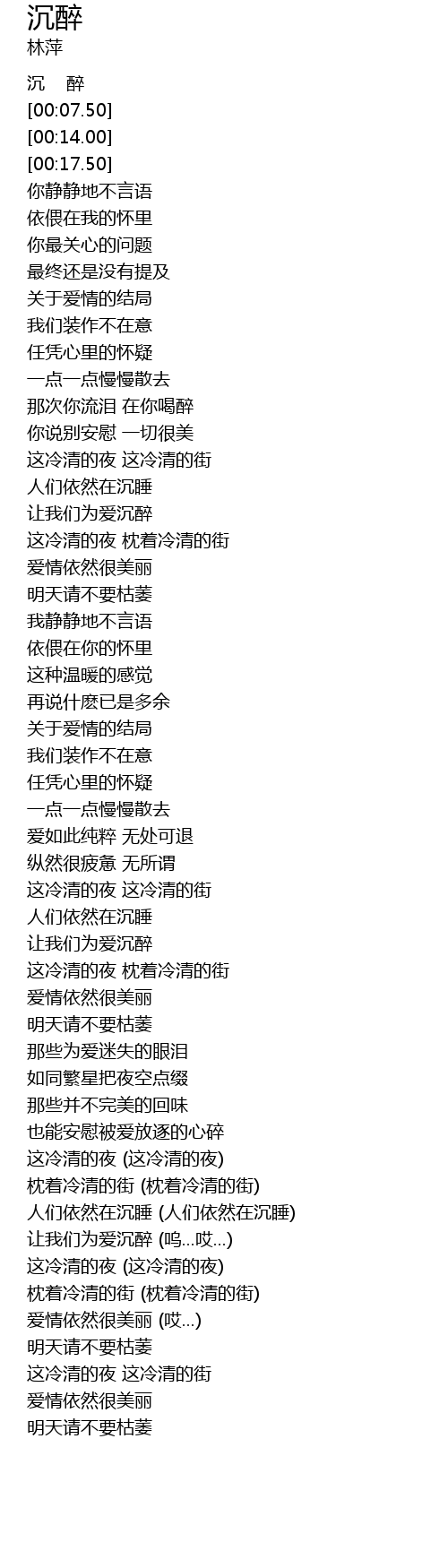 | [00:00.50] | 沉 醉 |