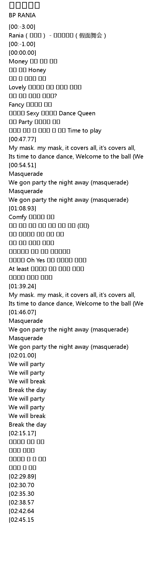 | [02:57.17][02:42.64] | We gon party the night away masquerade |