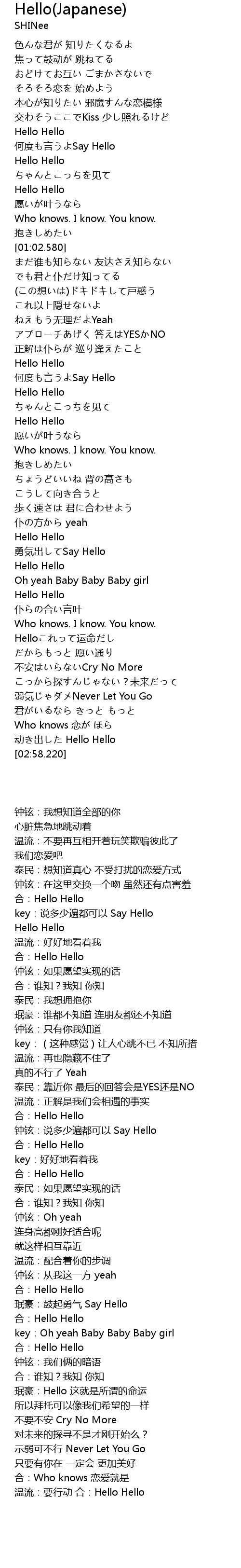 | [00:44.520] | key:说多少遍都可以 Say Hello |
