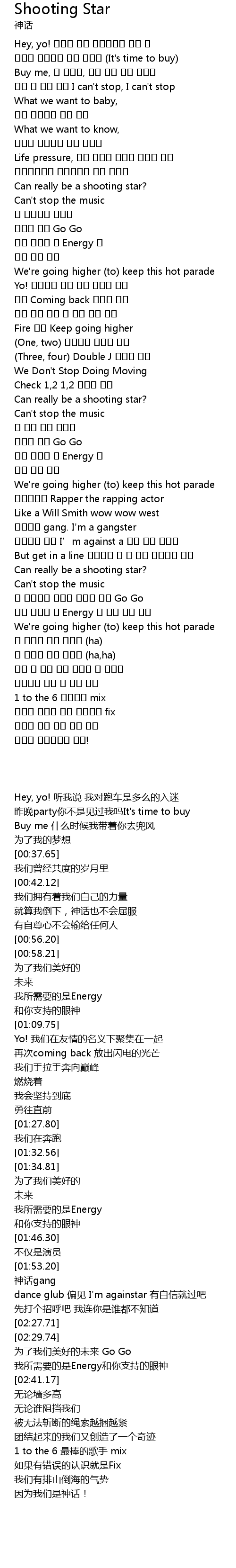 | [02:36.54] | 내게 필요한 건 Energy 와 너의 빛난 눈빛 |