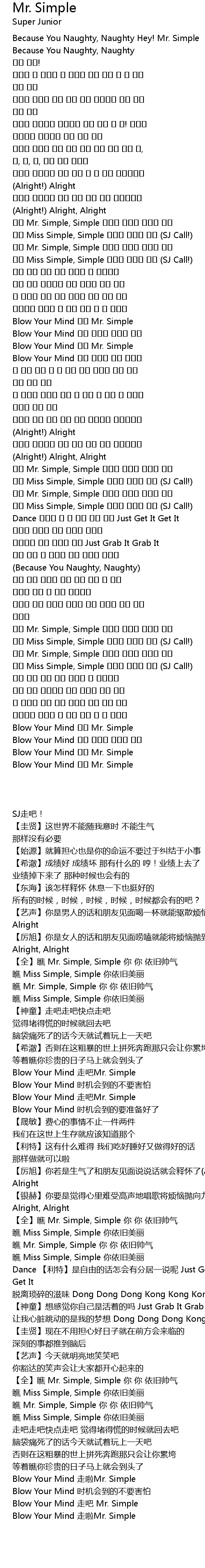 | [00:03.300] | Because You Naughty, Naughty Hey! Mr. Simple |