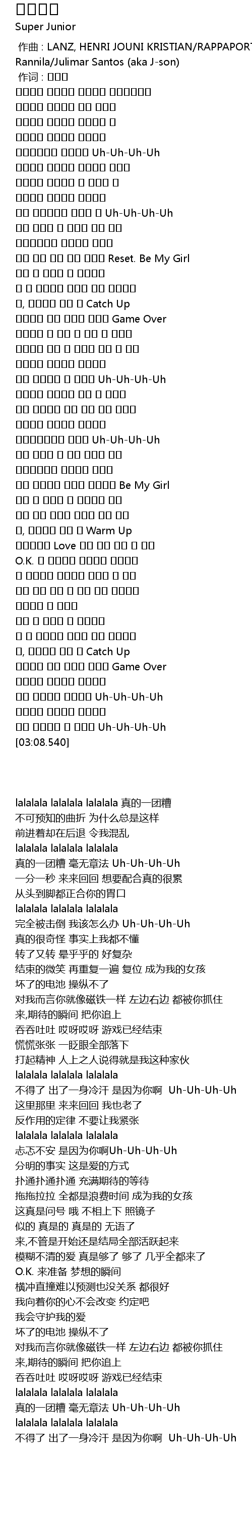 | [01:44.800] | 밀고 당겨봐야 전부다 시간낭비 Be My Girl |