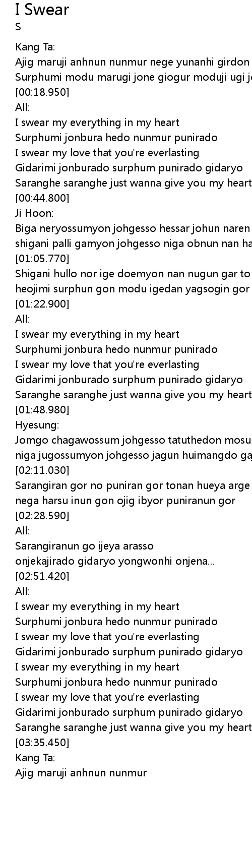 | [00:38.770] | Saranghe saranghe just wanna give you my heart |