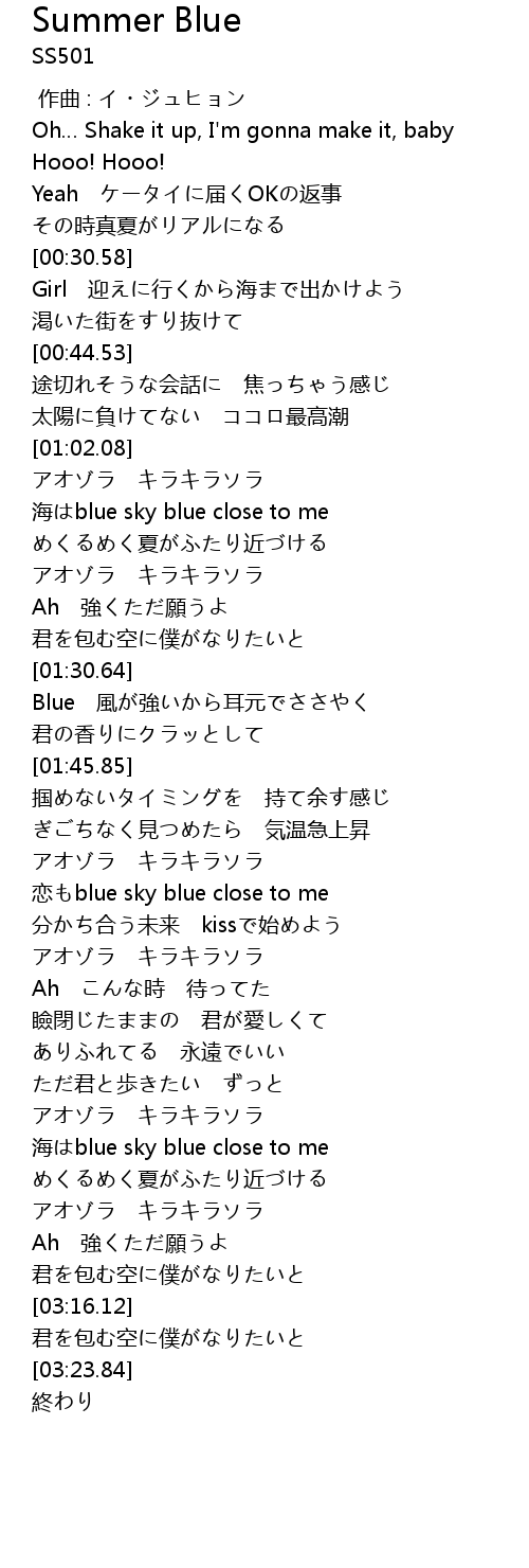 | [01:05.66] | 海はblue sky blue close to me |
