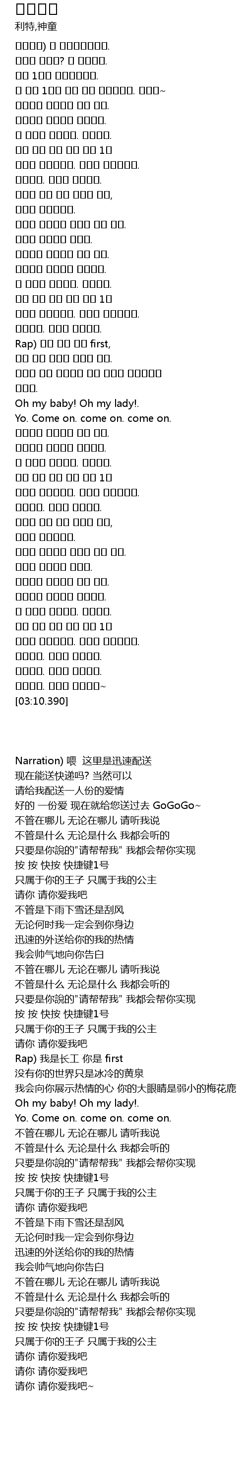 | [00:11.50] | 好的 一份爱 现在就给您送过去 GoGoGo~ |