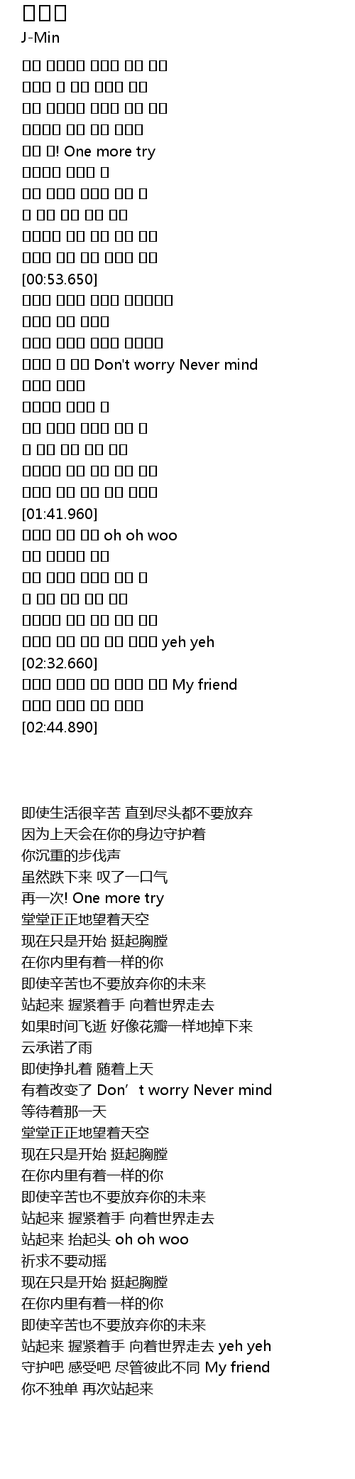 | [02:18.670] | 힘들어도 포기 말아 다시 한번 |