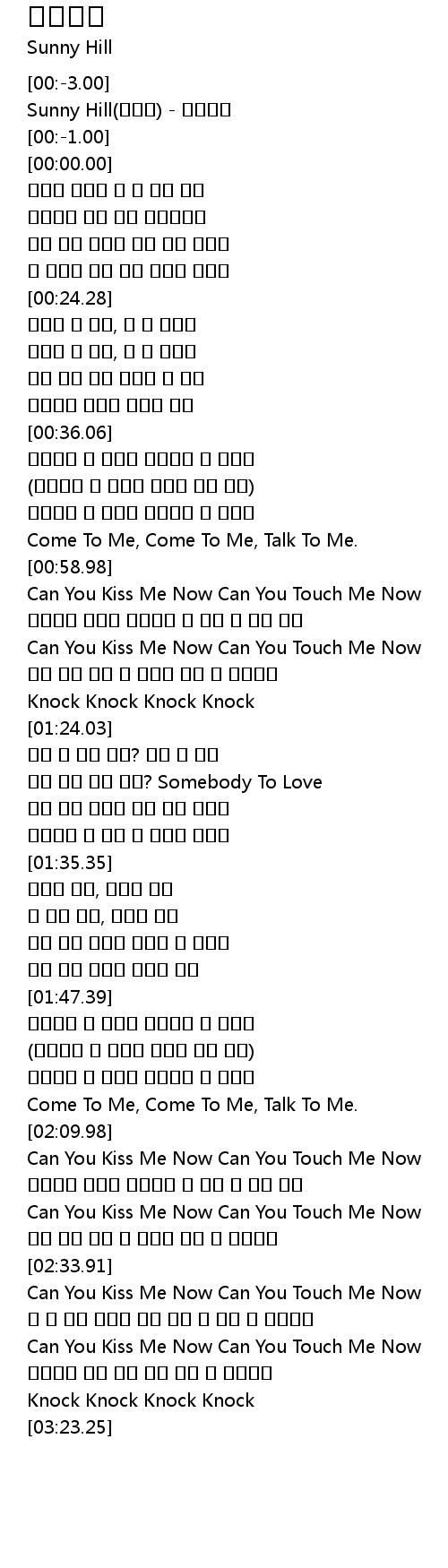 | [00:-2.00] | Sunny Hill(써니힐) - 술래잡기 |