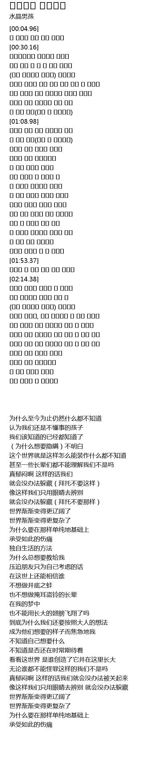 | [02:10.25] | 도대체 왜 우릴 았지 어른 맘대로 |