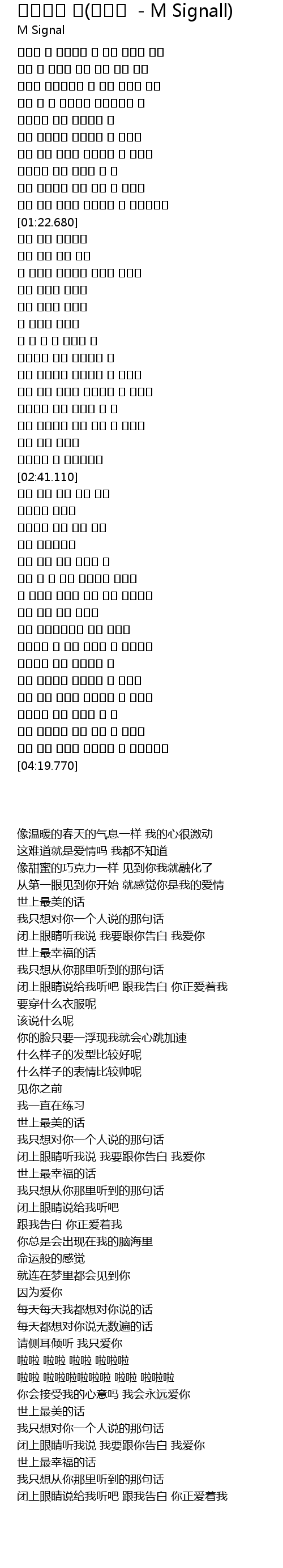 눈을 감고 들어봐 고백할게 널 사랑해 |