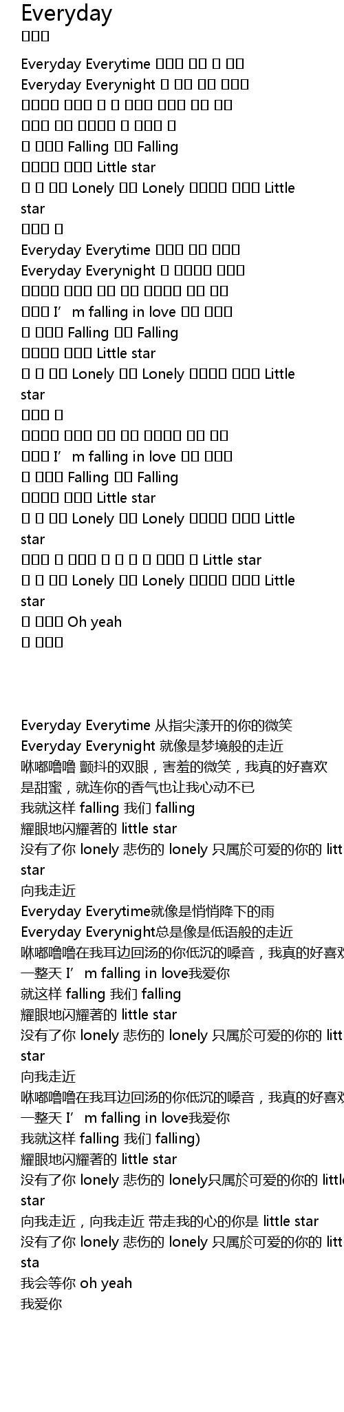 | [03:26.040] | 난 너 없인 Lonely 슬픈 Lonely 사랑스런 나만의 Little star |