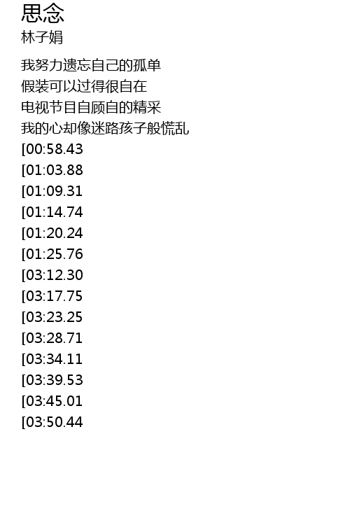 | [03:01.05][01:20.24] | 现在才知道思念是种煎熬 |