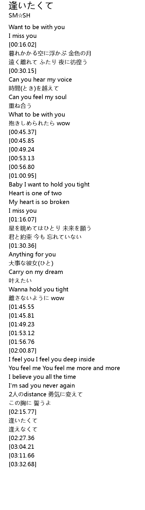 | [02:32.81][00:45.85] | 逢いたくて 逢えなくて |