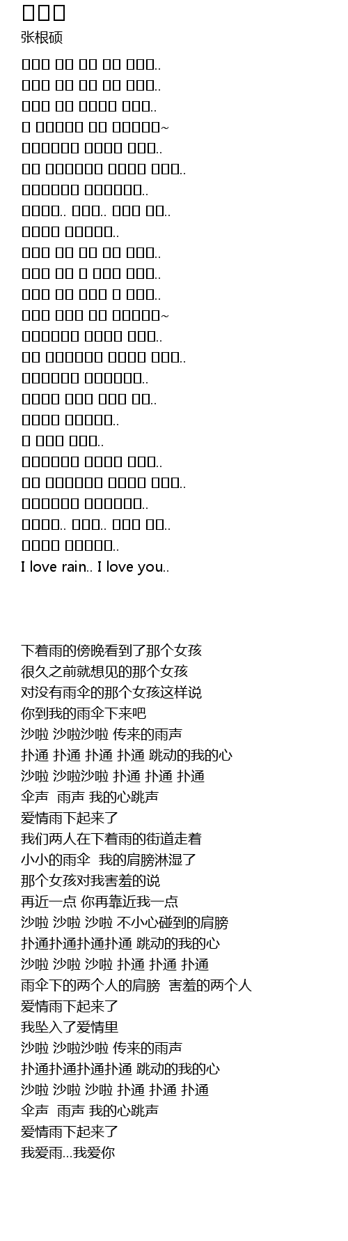 | [03:18.460] | 我爱雨...我爱你 |