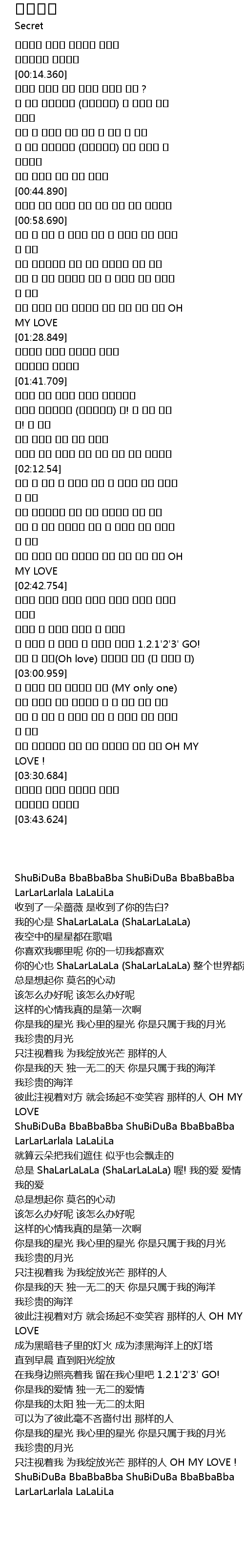 | [02:53.594] | 내 곁에서 날 비춰줘 내 맘속에 있어줘 1.2.1'2'3' GO! |