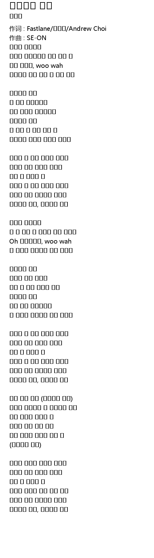 | 作词 : Fastlane/김태성/Andrew Choi | |