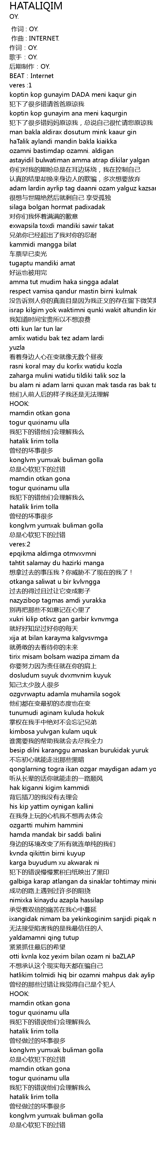 | [00:00.000] | 作词 : OY. |