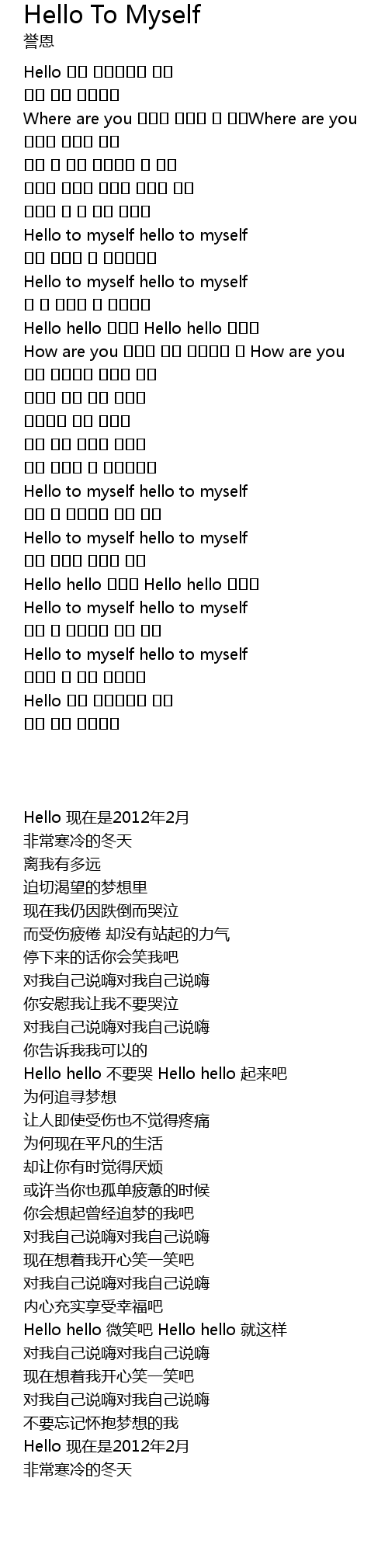| 歌曲 | Hello To Myself |