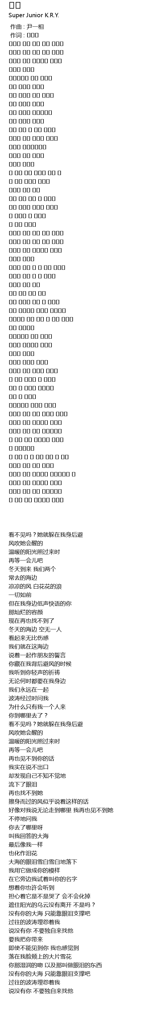 | [04:00.22] | 没有你的大海 只能靠眼泪支撑吧 |