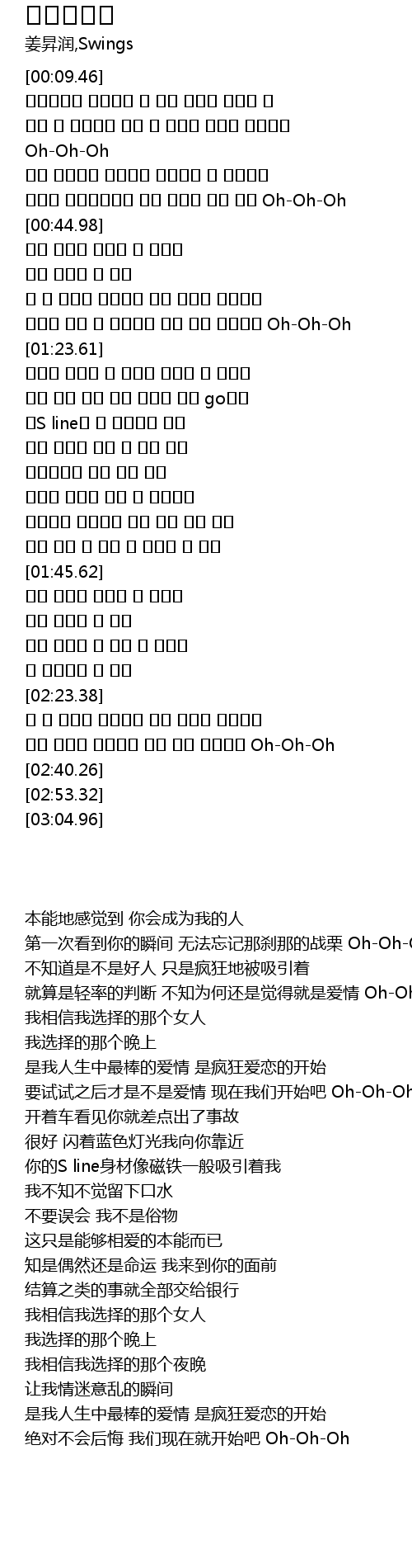 | [01:45.96] | 我相信我选择的那个女人 |