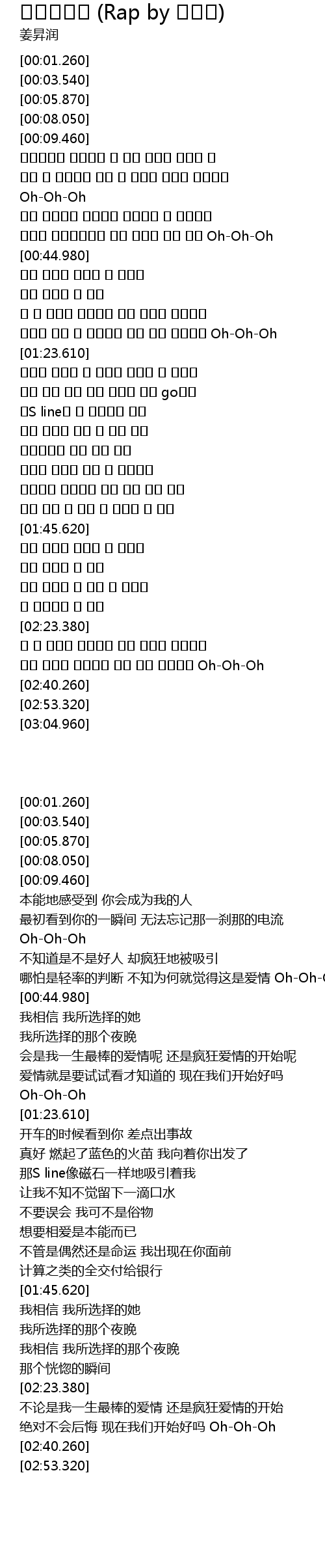 | [00:34.090] | 섣부른 판단일지라도 왠지 사랑일 것만 같아 Oh-Oh-Oh |