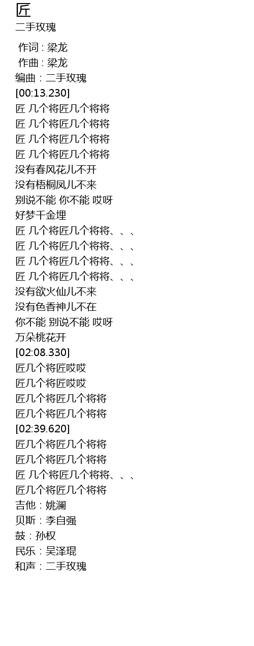| [02:29.810] | 匠几个将匠几个将将 |