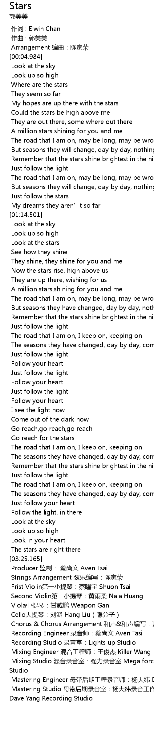 | [03:27.295] | Strings Arrangement xián yuè biān xiě: chén jiā róng |
