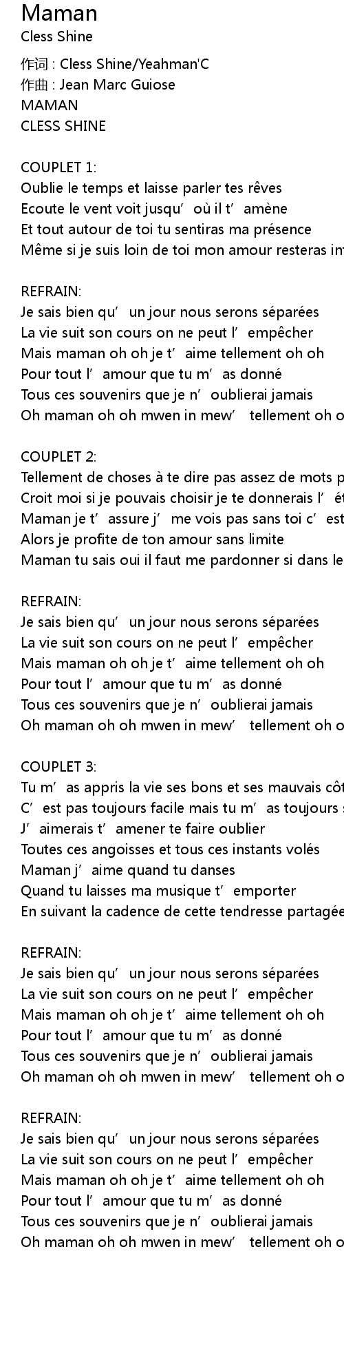| Oh maman oh oh mwen in mew' tellement oh oh | |