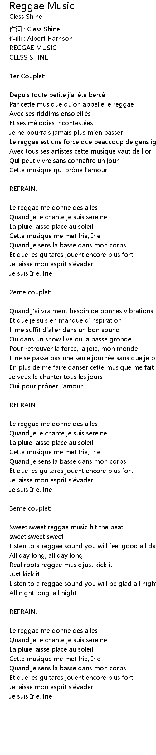 | 歌曲 | Reggae Music |